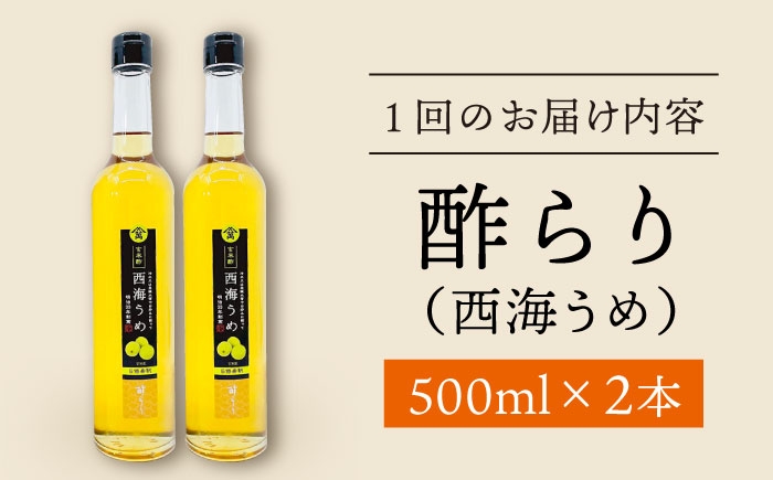 | 容量 | 月一回下記の内容量でお送りいたします。 酢らり(西海うめ)500ml 2本 |