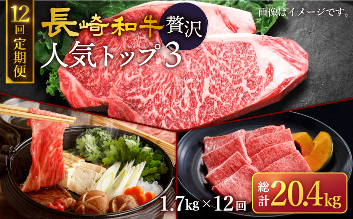 地域の生産者応援の品 夢のコラボ 【12回定期便】 長崎和牛 贅沢人気トップ3 セット 訳あり<スーパーウエスト> [CAG245]