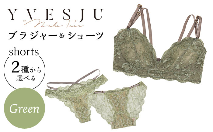 ノンワイヤーで楽ちん綺麗♪ 【うっとりするほど綺麗な私に】FINAL FORM ブラジャー&ショーツセット Green yvesju イヴジュ イヴジュビリー ブラジャー ノンワイヤー ナイトブラ 育乳 下着 ランジェリー ブラ 盛れる 谷間 楽 レース 補正 卒乳 脇高 マタニティ 日本製 垂れ <株式会社Jubilee> [CEY040]