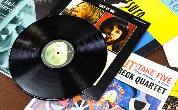 LPレコード5枚を収納しやすい マチ付。 音浴博物館オリジナルレコードバッグ 猫+トランペット <音浴博物館> [CBH009]