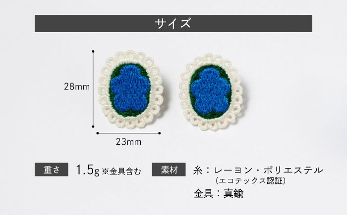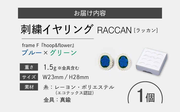 創業48年の刺しゅう技術を生かしたアクセサリーブランド『RACCAN ラッカン』 【ファクトリー製造の刺繍イヤリング raccan[ラッカン]】frame F『hoop&flower』ブルー×グリーン [CDX010] <山崎マーク>