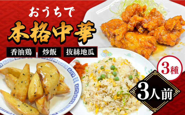 長崎「中華料理 華豊」が作る本格中華を、ご自宅で!簡単に! 【本格中華をご家庭で】おうちで中華3種セット 冷凍(3人前)/ 中華 中華料理 惣菜 お取り寄せ おかず 香油鶏 からあげ チャーハン 炒飯 大学いも 大学芋 大学イモ / 南島原市 / ミナサポ [SCW039]