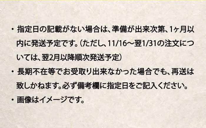 ※指定日の記載がない場合は、準備が出来次第、1ヶ月以内に発送予定です。(ただし、11/16~翌1/31の注文については、翌2月以降順次発送予定)