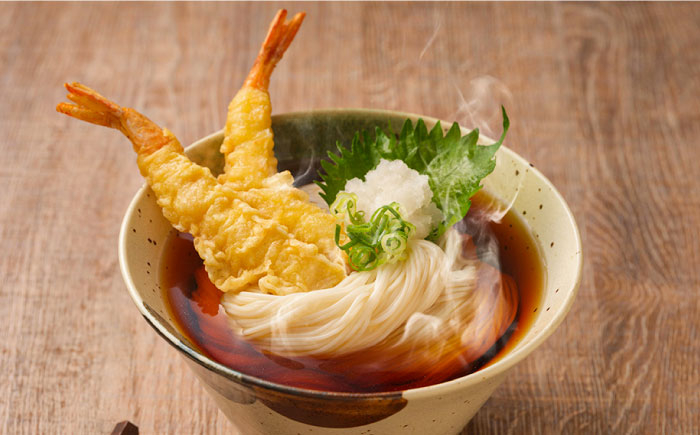 3代目【一級製麺技能士】謹製・厳選した九州産小麦の手延べそうめんは、しなやかで弾力性のある食感が特徴です。