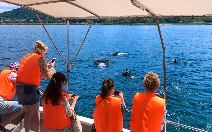船に乗ってイルカの群れを見に行く大人気のクルーズ。
