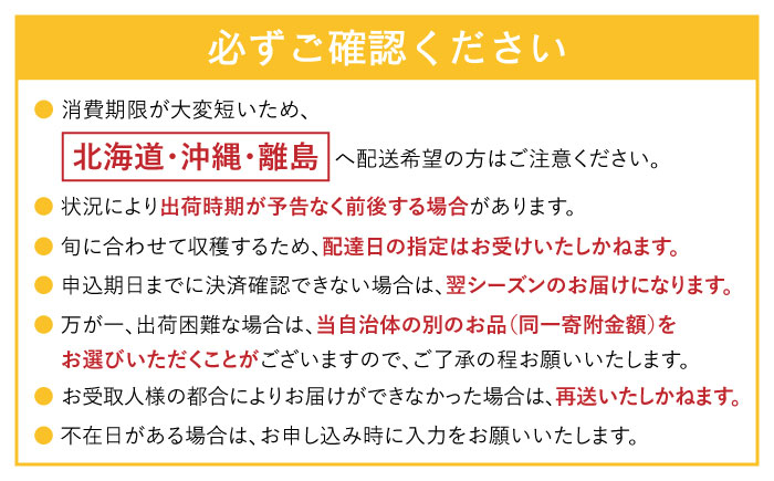 ・プリンスメロン:4月下旬〜5月上旬に発送予定 ・タカミレッド:5月上旬〜5月中旬に発送予定 ・イエローキング:5月上旬〜5月中旬に発送予定 ・タカミメロン:5月中旬〜5月下旬に発送予定 ※発送時期は例年を基準にした目安のため、天候等の影響により前後する場合があります。 ※着日指定はお受け出来ません。予めご了承ください。 |