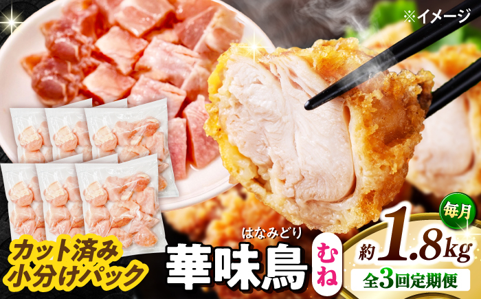 南島原産の華味鳥!小分け、カット済だから、まな板不要で使い勝手抜群♪ 【3回定期便】華味鳥 むね肉 1.8kg(300g×6袋)小分け カット済み 南島原産 / 鶏肉 定期便 肉 とり肉 ムネ肉 鶏むね肉 冷凍 / 南島原市 / 株式会社渡部ブロイラー [SFS012]