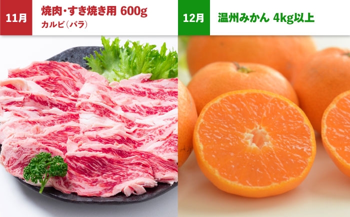 長崎和牛と旬のフルーツが楽しめる定期便です! 【12回定期便】長崎和牛と旬のフルーツが楽しめる バラエティ定期便 / フルーツ定期便 果物定期便 肉定期便 牛肉 びわ メロン ぶどう みかん / 南島原市 / 贅沢宝庫 [SDZ053]