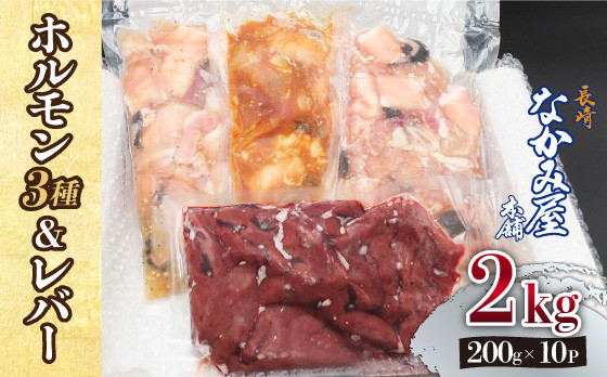 お酒のおつまみに! 長崎和牛 のプリプリ食感 ホルモン と レバーのセット★ 【長崎和牛】ミックスホルモン3種 & レバー1種 計2kg(200g×10袋) 長与町/長崎なかみ屋本舗 [EAD024] 国産 和牛 ホルモン ほるもん レバー ればー ホルモンミックス 牛