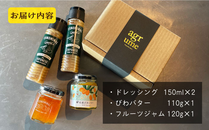 人気商品を詰め合わせました♪ギフトにも最適なジャムやバターのセットです◎ CONOMINALギフトB(ドレッシング&びわバター&フルーツジャム) 長与町/アグリューム [EAI026] ドレッシング セット オリーブオイル オリーブ おりーぶおいる 瓶 ジャム じゃむ バター ばたー ギフト