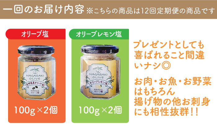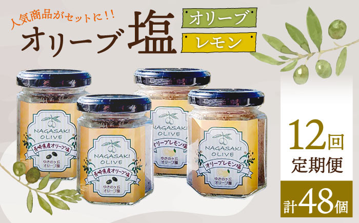 人気商品のセットが登場・・・! 【12回定期便】オリーブ塩&オリーブレモン塩 セット(各2個)計48個 長与町/ゆきのヶ丘オリーブ園 [EAV017] 調味料 オリーブ 塩