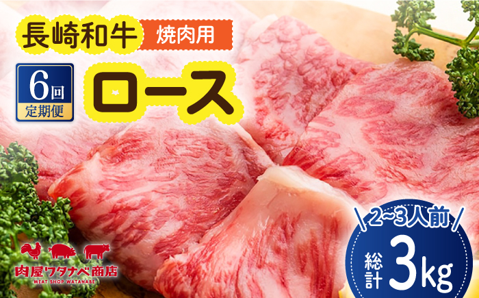 肉 長崎和牛 牛肉 焼肉 ロース 和牛 500g 冷凍 【6回定期便】 長崎和牛 焼肉 ロース 約500g 長与町/ワタナベ商店 [ECT019] 国産 長崎和牛 和牛 ロース ろーす 焼き肉 牛肉 冷凍 ソース付き ギフト お祝い 定期 定期便