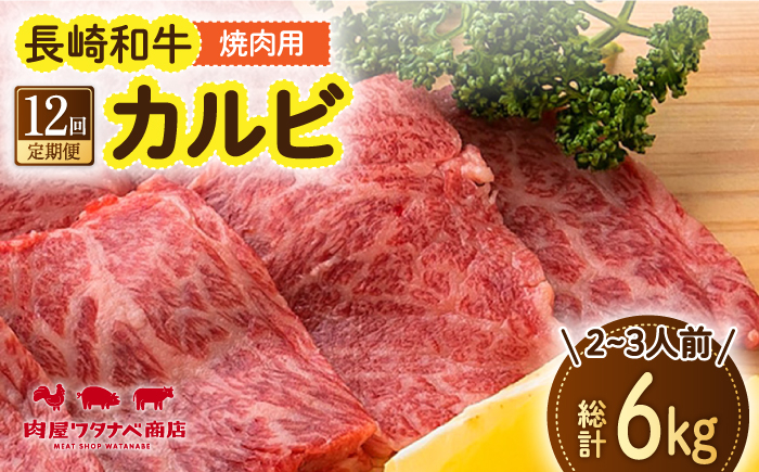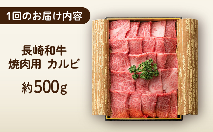 肉 長崎和牛 牛肉 焼肉 カルビ 長崎 和牛 焼き肉 牛 冷凍 ギフト 贈答 【12回定期便】 長崎和牛 焼肉 カルビ 約500g 長与町/ワタナベ商店 [ECT024] 国産 長崎和牛 和牛 カルビ かるび カルビ肉 焼き肉 牛肉 冷凍 ソース付き ギフト お祝い 定期 定期便