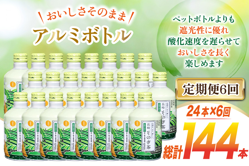 毎日飲むお茶だから。そのぎ茶アルミボトル定期便 茶 お茶 緑茶 長崎 そのぎ茶 定期便 毎月 彼杵茶 玉緑茶 アルミボトル 290ml 24本 6回 総計144本 [彼杵の荘 長崎県 東彼杵町 hs42bag270040] 月に1回 ペットボトル 約 300ml 300