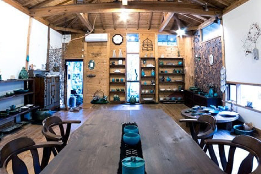 年2回、工房展示室にて陶房展を開催しており、そのぎ茶をゆっくりと味わいながら、作品をご覧いただけます。