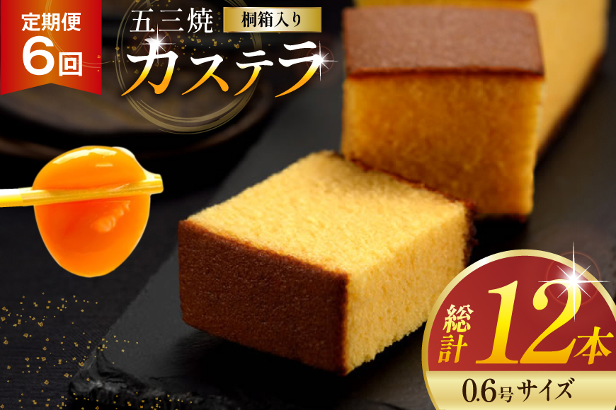 | 容量 | 月に1回(計6回)お届けいたします。 ・五三焼カステラ0.6号(310g)×2 ・特製紙袋(小)×2 ■原料原産地 長崎県産 |