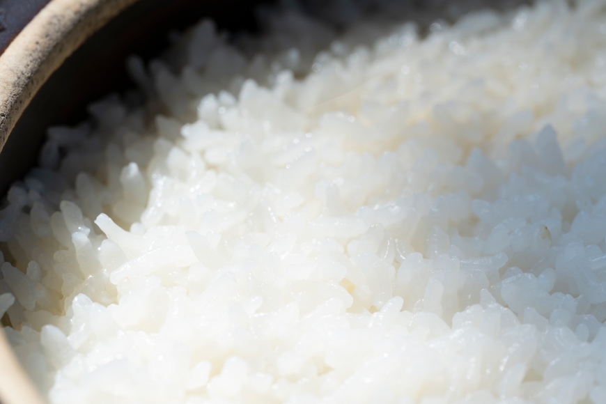 粒はやや小ぶりながら、炊き上がると米がしっかり立ち、名前の通りツヤツヤと輝くのが特徴です。