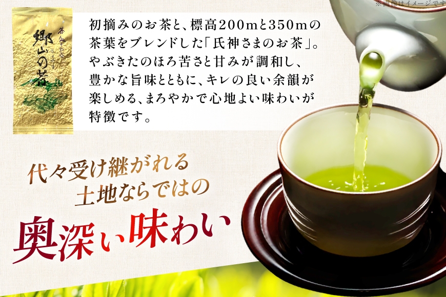 初摘みのお茶と、標高200mと350mの2か所で育てた茶葉をブレンドした「氏神さまのお茶」。