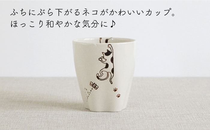 フチにぶらさがるネコの絵柄がかわいいカップ♪