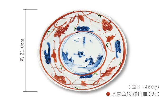 肉じゃがなどのメイン料理や、サラダ皿にもピッタリ! 【波佐見焼】楕円皿 大 3枚セット〈染錦水草魚紋〉直径21cm【ゆい窯】[OAO005] / オーバル皿 陶器 皿 お皿 プレート 和食器 食器 波佐見焼 オーバルプレート 皿 楕円 楕円皿 パスタ皿 食器 陶器類 波佐見焼