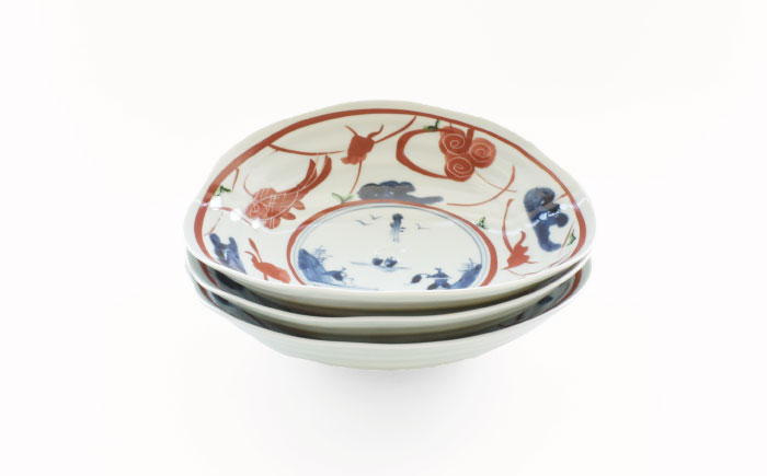 藍染に赤絵を用い、高級感を出しております。食卓に「和」の味わいを表現し、使い勝手の良い器です。