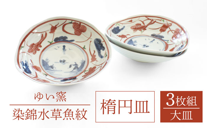 【波佐見焼】楕円皿 大中小 3点セット 〈染錦水草魚紋〉【ゆい…