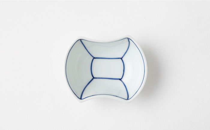縁起の型にシックな呉須で絵付けされた豆鉢シリーズは、器の上に重ねたりと使い方は無限大。遊び感覚で食卓を楽しく♪