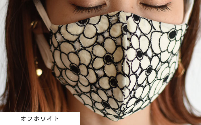 オリジナルの立体構造でお顔にフィット! カットワーク レース マスク 〈2枚セット〉ブラック・オフホワイト 調整可能 洗える 立体 マスク【coco plus an factory】[OCR008]