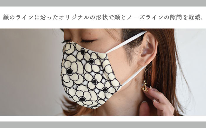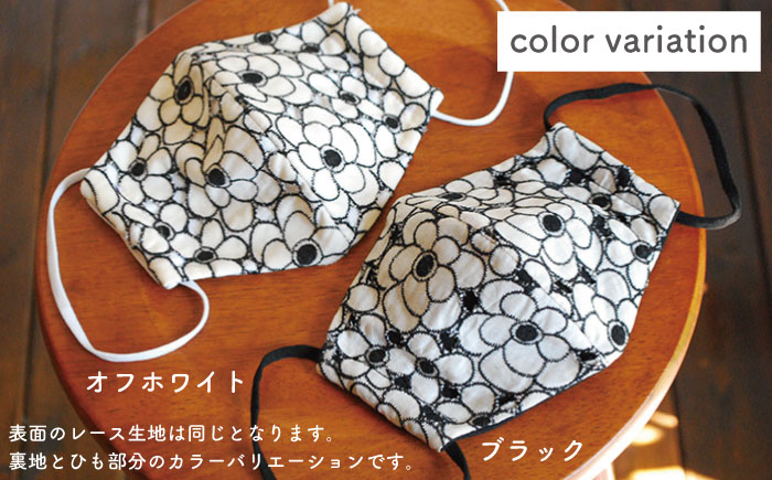 オリジナルの立体構造でお顔にフィット! カットワーク レース マスク 〈2枚セット〉ブラック・オフホワイト ゴム紐 洗える 立体 マスク【coco plus an factory】[OCR009]