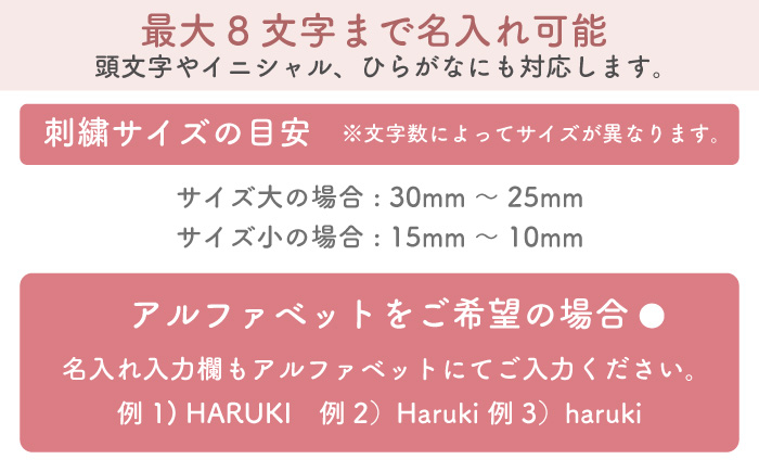 4,スタイ2点目:刺繍カラーと文字サイズをご記入ください。