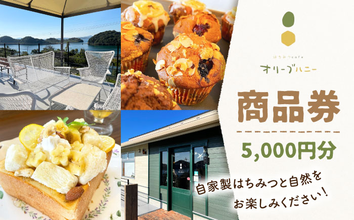 大村湾とオリーブの木に囲まれた絶好のロケーションで使える商品券♪ 【はちみつcaféオリーブハニー 】商品券 5,000円分 ”自家製のハチミツと自然をお楽しみ下さい!” [OCG002] / 商品券 カフェ 食事券 ギフト券 商品券 川棚町カフェ 川棚町食事券 商品券 はちみつ 絶景