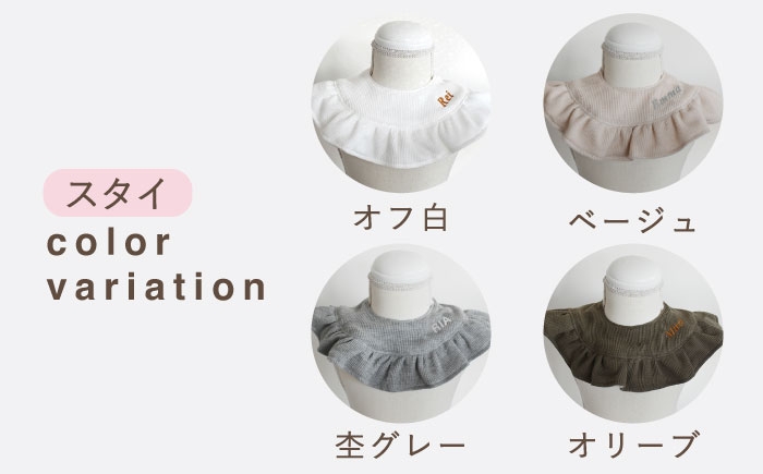 | 容量 | 【サイズ・詳細】 ■首回り:28cm~30cm ■幅:7~10cm ■素材:(国内産) ワッフル 綿100% ダブルガーゼ:綿100% 刺繍糸:ポリエステル100% ■注意 ※お使いのディスプレイにより実際の色味と異なる場合がございます。 ※素人採寸により誤差が生じる場合があります ※取り扱いにつきましてはタグをご参考の上お取り扱いください。 【加工地】 長崎県川棚町 |