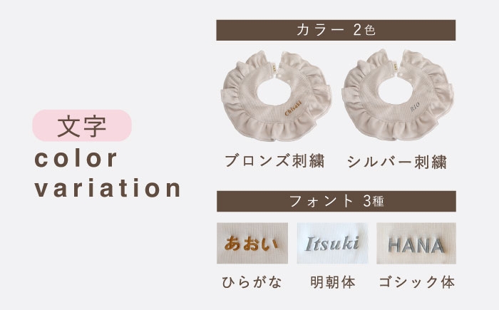 お名前入りで世界に一つだけの贈り物に! 【名入れ可能!】ワッフル素材 フリル ベビースタイ【coco plus an factory】ベージュ×シルバー [OCR080-4]
