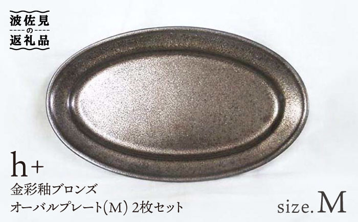 アンティークのような風合いの存在感のあるお皿2枚セット 【波佐見焼】h+ 金彩釉ブロンズオーバル プレート M 2枚セット 食器 皿 【堀江陶器】 [JD41]