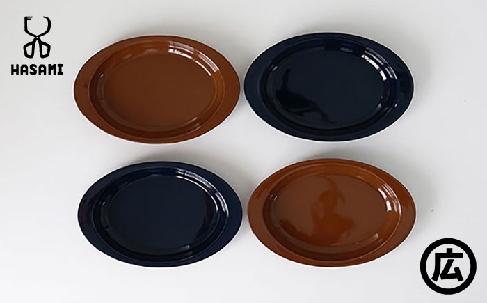 ・マルヒロ「HASAMI」シリーズ 【波佐見焼 マルヒロ】HASAMI SEASON 01 オーバルプレートセット(4点)ブラウン×ネイビー [EB150]
