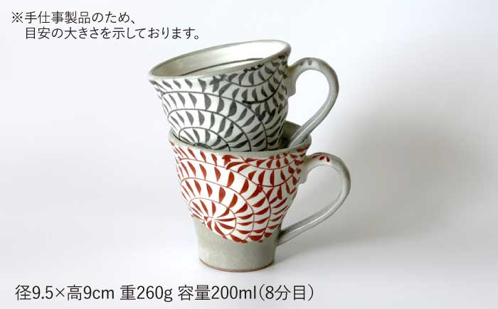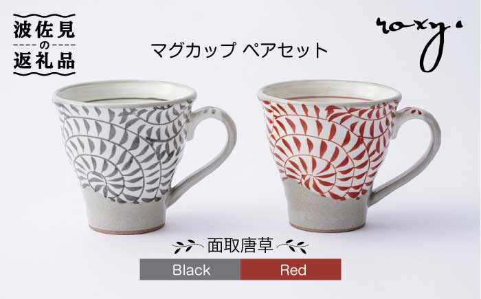 職人の温もりを感じる手描きの唐草文様と極上の質感。 【波佐見焼】マグカップ ペアセット 面取唐草(レッド・ブラック) 食器 皿 【ROXY・HASAMI】 [SB106]