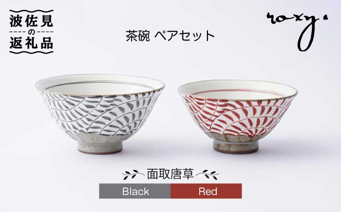 職人の温もりを感じる手描きの唐草文様と極上の質感。 【波佐見焼】茶碗 ペアセット 面取唐草(レッド・ブラック) 食器 皿 【ROXY・HASAMI】 [SB107]
