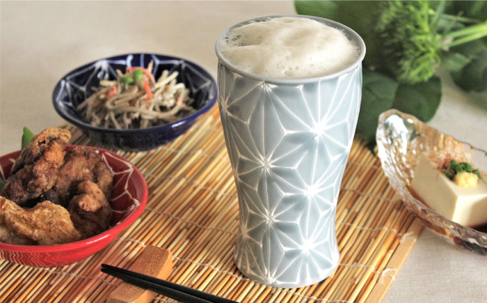涼しげな麻の葉柄ビアカップ 3色セット 【波佐見焼】ホワイトライン麻 ビアカップ 3色セット 食器 皿 【 翔芳窯】 [FE08]