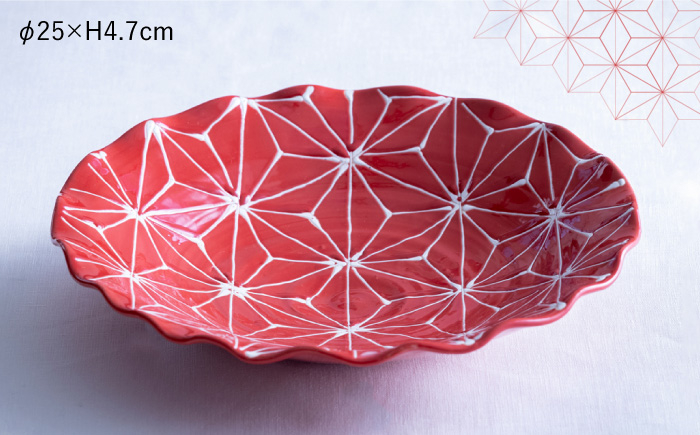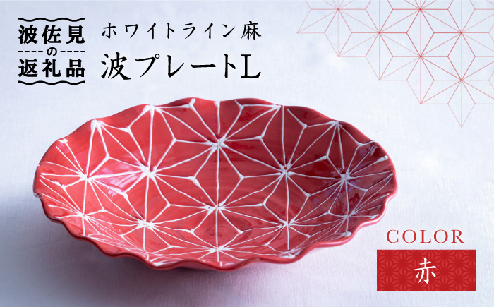 普段使いにもパーティーにも。どんなシーンにも映える大皿です! 【波佐見焼】ホワイトライン麻 波 プレート L 赤 食器 皿 【翔芳窯】 [FE10]