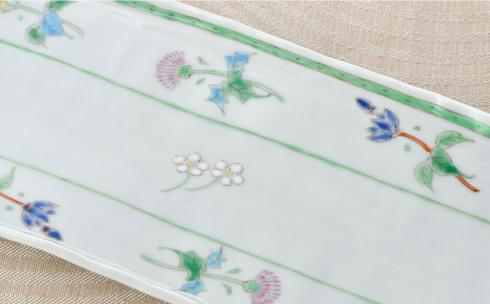 手描きの白山一華が咲く楕円鉢で、いつもの食卓にそっと四季の息吹を