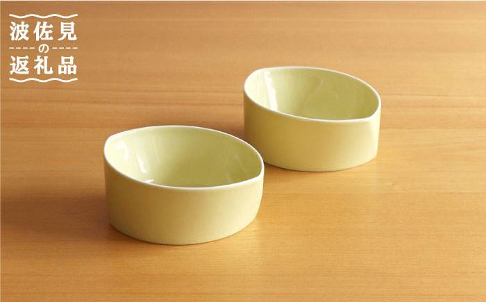 木の葉の形にねじりを加えた個性的なフォルム 【白山陶器】【グッドデザイン賞受賞】リーヴズデザートカップ 小鉢 イエロー 2枚セット 食器 皿 【波佐見焼】[TA121]