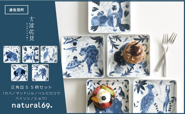 【波佐見焼】染付古波佐見 正角皿S 5柄セット 食器 皿 【natura…