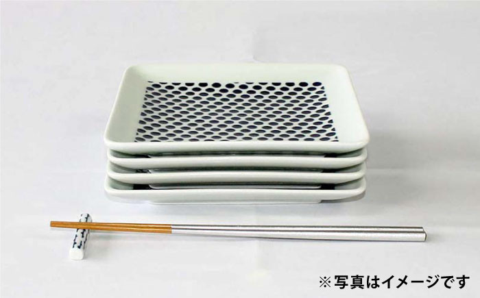 「和の文様」器の組み合わせの演出 【波佐見焼】KUVIO ウェーブ・ドット 角皿 M 4点セット 食器 皿 【石丸陶芸】 [LB65]