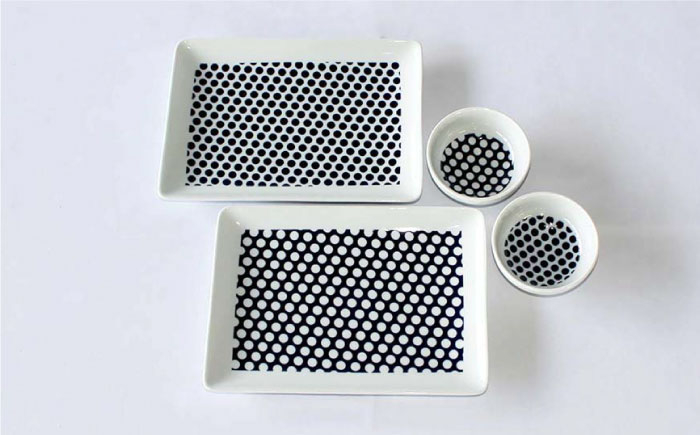 「和の文様」器の組み合わせの演出 【波佐見焼】KUVIO ドット 長角皿・ボウル 4点セット 食器 皿 【石丸陶芸】 [LB66]