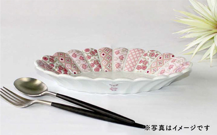 伝統の転写の技術と古典柄のリメイク 【波佐見焼】花離宮 ペア楕円皿 (大) プレート 食器 皿 【石丸陶芸】 [LB71]