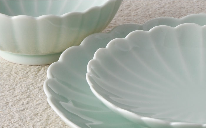 普段の食卓を華やかにしてくれる器 【波佐見焼】RINKA プレート ボウル 3点セット 青磁 食器 皿 【長十郎窯】 [AE28]