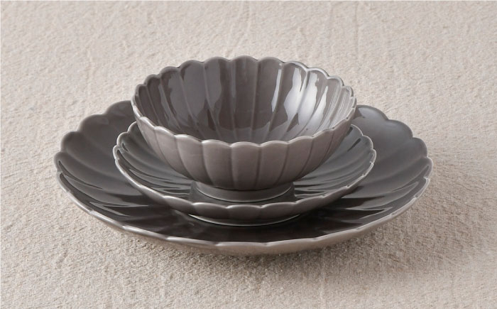 普段の食卓を華やかにしてくれる器 【波佐見焼】RINKA プレート ボウル 3点セット グレー 食器 皿 【長十郎窯】 [AE31]