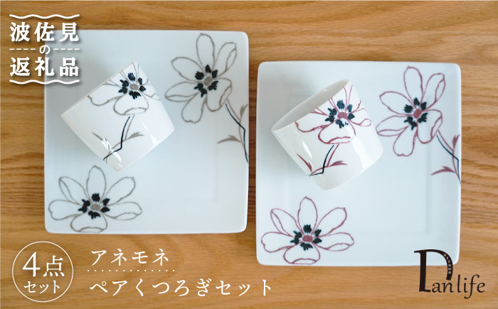 【波佐見焼】アネモネ プレート そばちょこ くつろぎセット ペア 食器 皿 【団陶器】 [PB64]