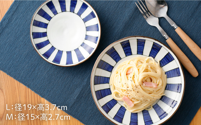 手描きの器のあたたかさ。 【波佐見焼】 染シリーズ プレート M/L ペア 4枚 幾何紋 短冊 食器 皿 【山下陶苑】 [PC14]
