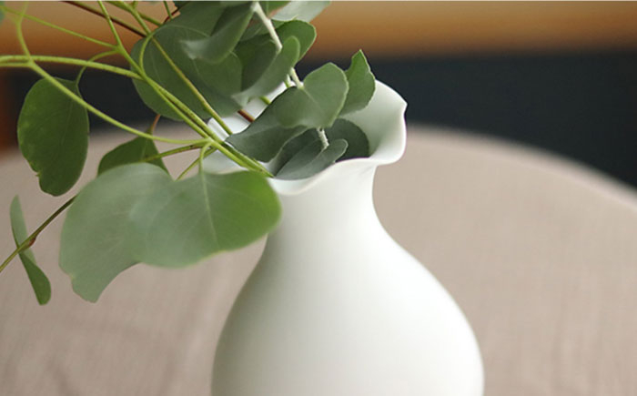 胴がぷっくりと膨らみ、美しいフォルムが魅力のフリル花びん。